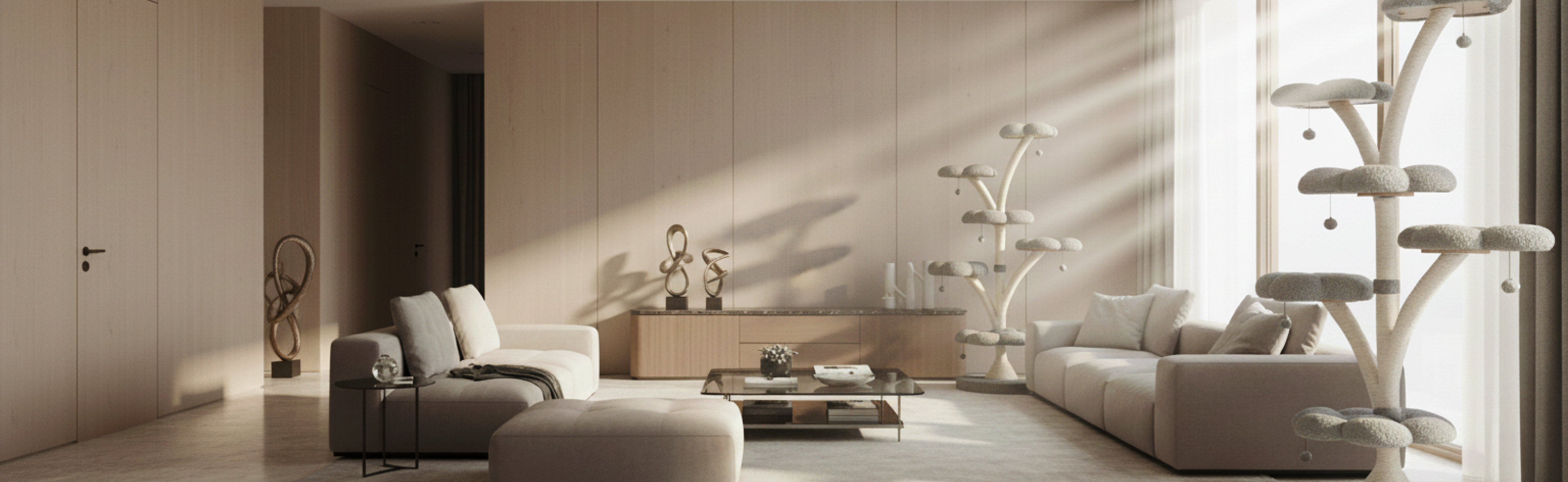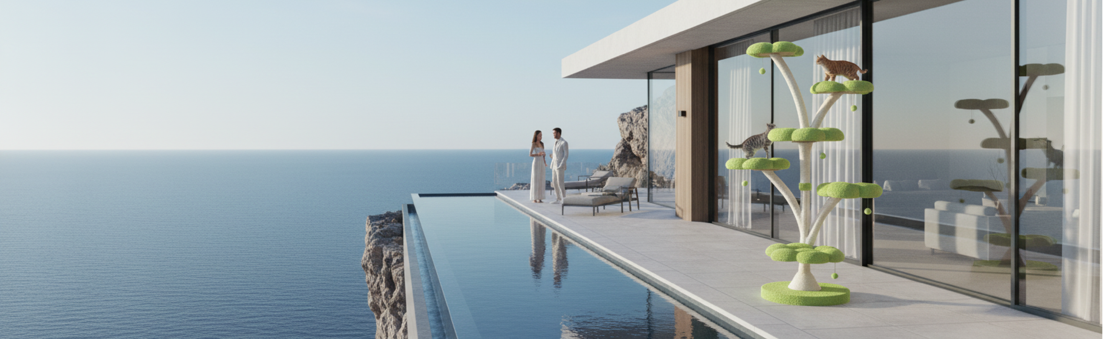 Happiness is seeing cats playing freely and living in a beautifully designed home.