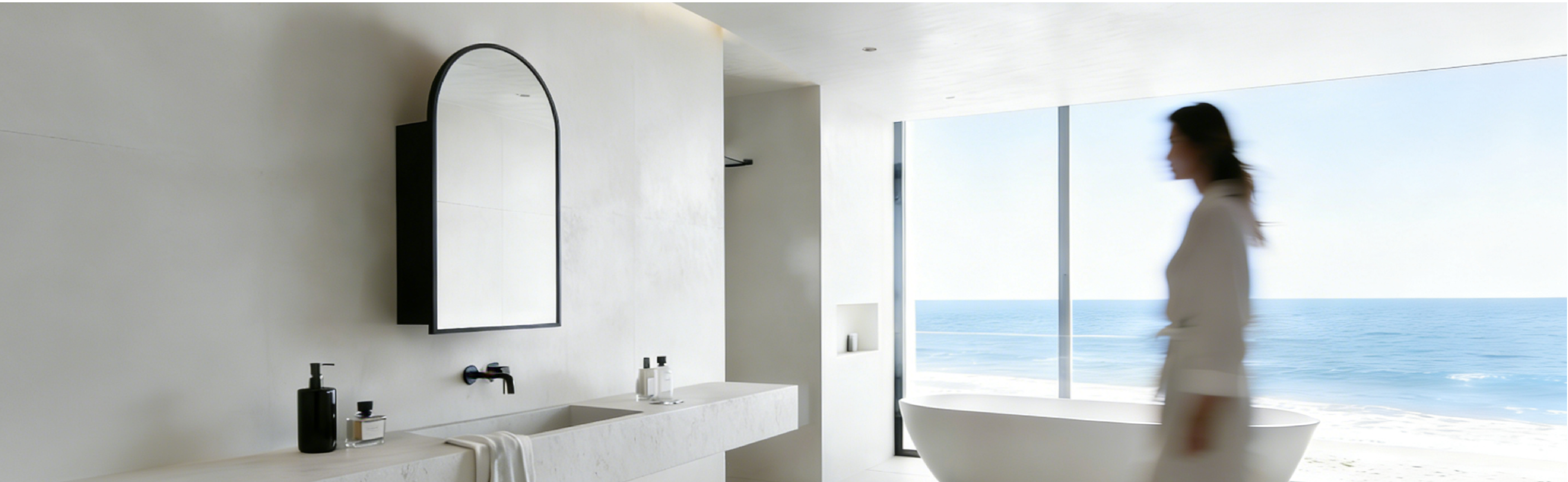 Hide the clutter behind the mirror to make the bathroom look cleaner.