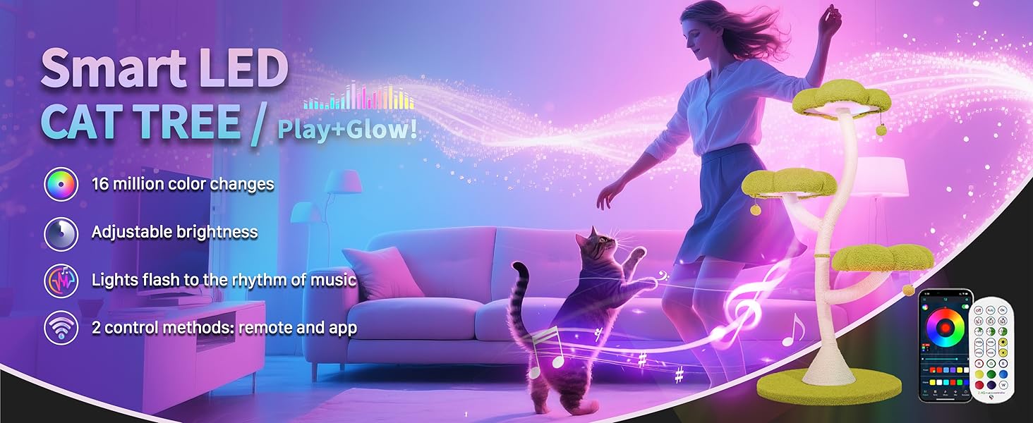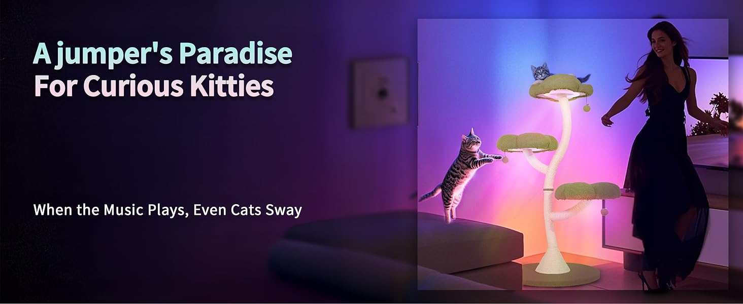 LED Lighting: Each petal base is encircled by a ring of LED light strips. The strips support 16 million color variations, adjustable brightness, and can flash in sync with music rhythms, allowing you to dance with your beloved pet. Light intensity can change in response to sound;